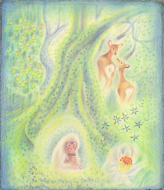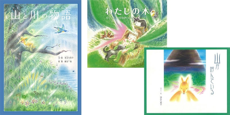 美しい絵は、それだけで言葉以上の表現力を持ちますが、池永先生の絵は、まさにそうだと思います。木々や生き物達・山の描写の美しさ可愛らしさは勿論なのですが、水と光の輝きに圧倒されました。透明な水や光の描写の中に、まるで何かの命が宿っているようです。