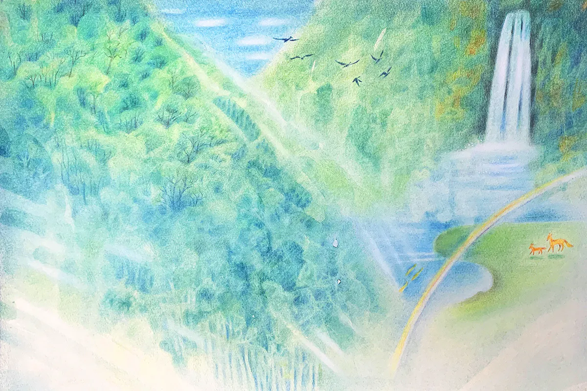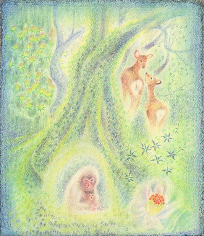 自然界のルールは、透きとおる色彩とあたたかなタッチの中にみごとに表現されています。