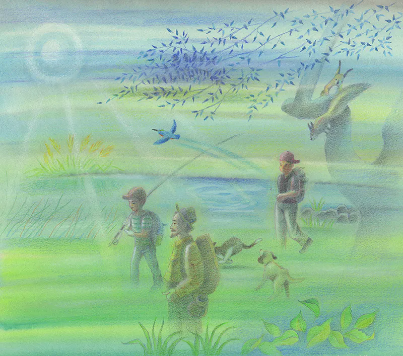 2021年、享年64歳で亡くなられた環境保護活動家で川辺川釣り師 鮒田一美さんが語られてきた川や山での掟(ルール)、自然の中で生かされている人間という自覚と自然への畏怖をもとに絵と文章で構成され、自然を心から愛し続けてきた池永さんならではの静かで強い思いが詰め込まれた作品である。