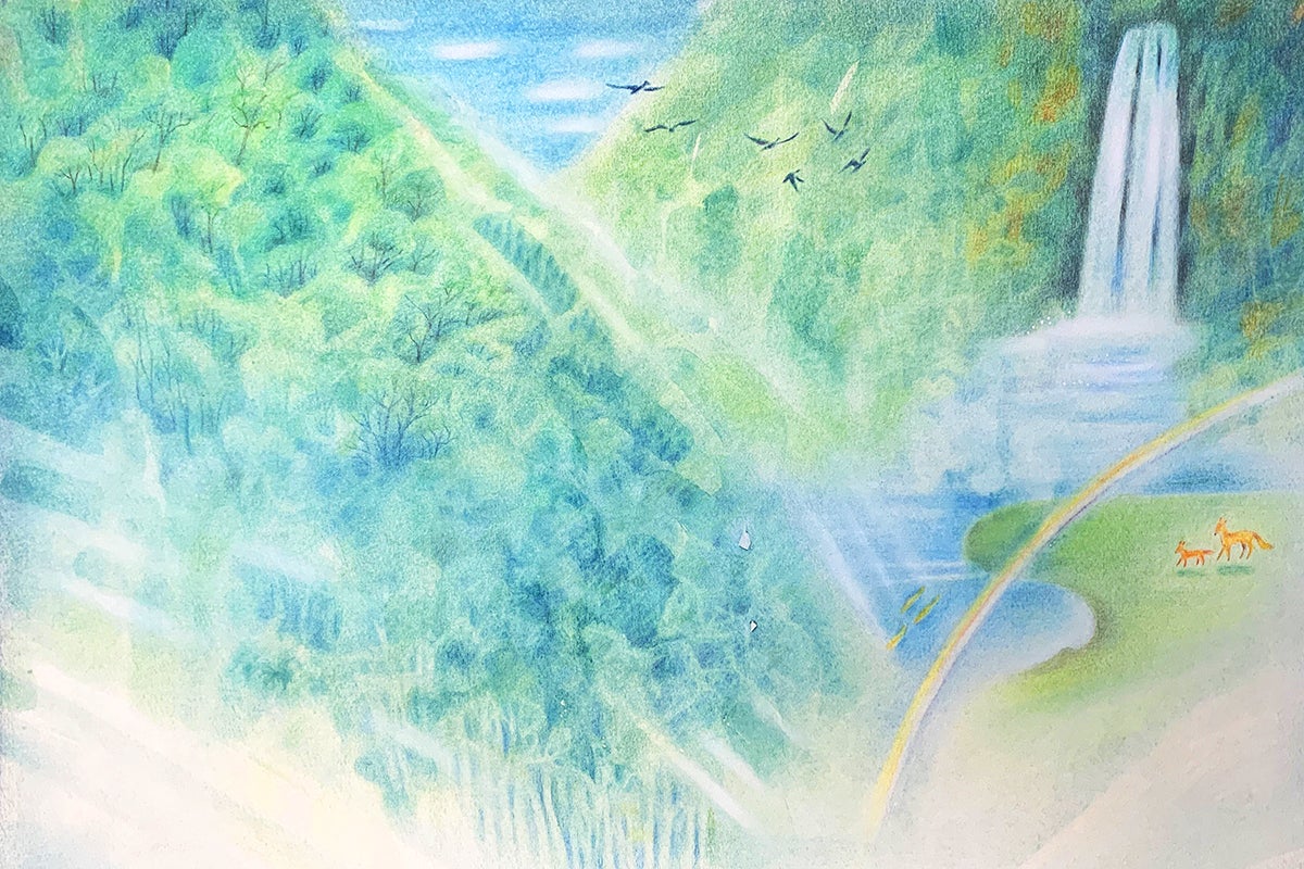 今回出版を予定されてる絵本作品『山と川の物語』は、池永芸術の集大成とも言うべき質の高い作品である。