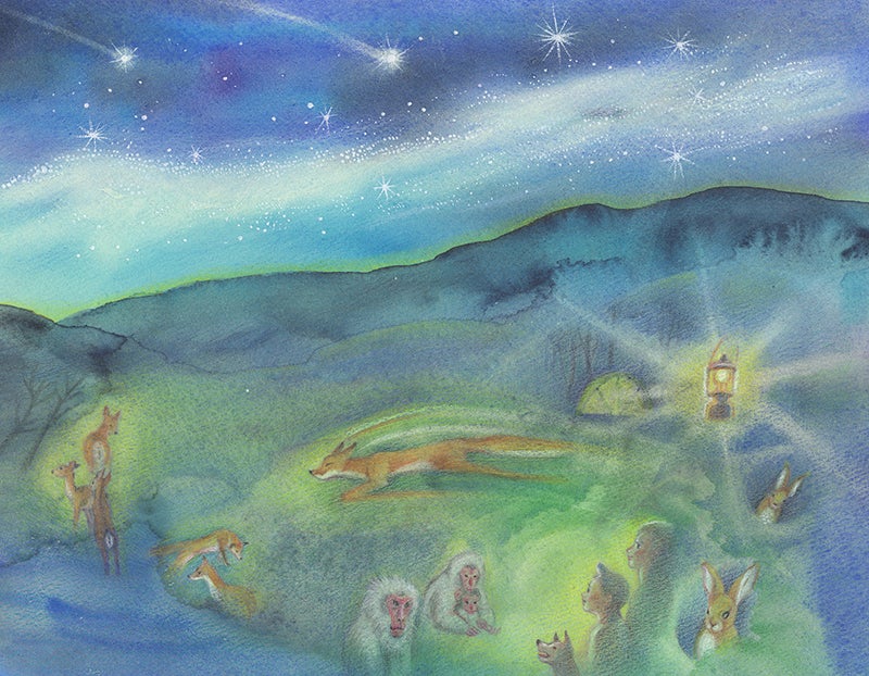 美しい絵は、それだけで言葉以上の表現力を持ちますが、池永先生の絵は、まさにそうだと思います。木々や生き物達・山の描写の美しさ可愛らしさは勿論なのですが、水と光の輝きに圧倒されました。透明な水や光の描写の中に、まるで何かの命が宿っているようです。