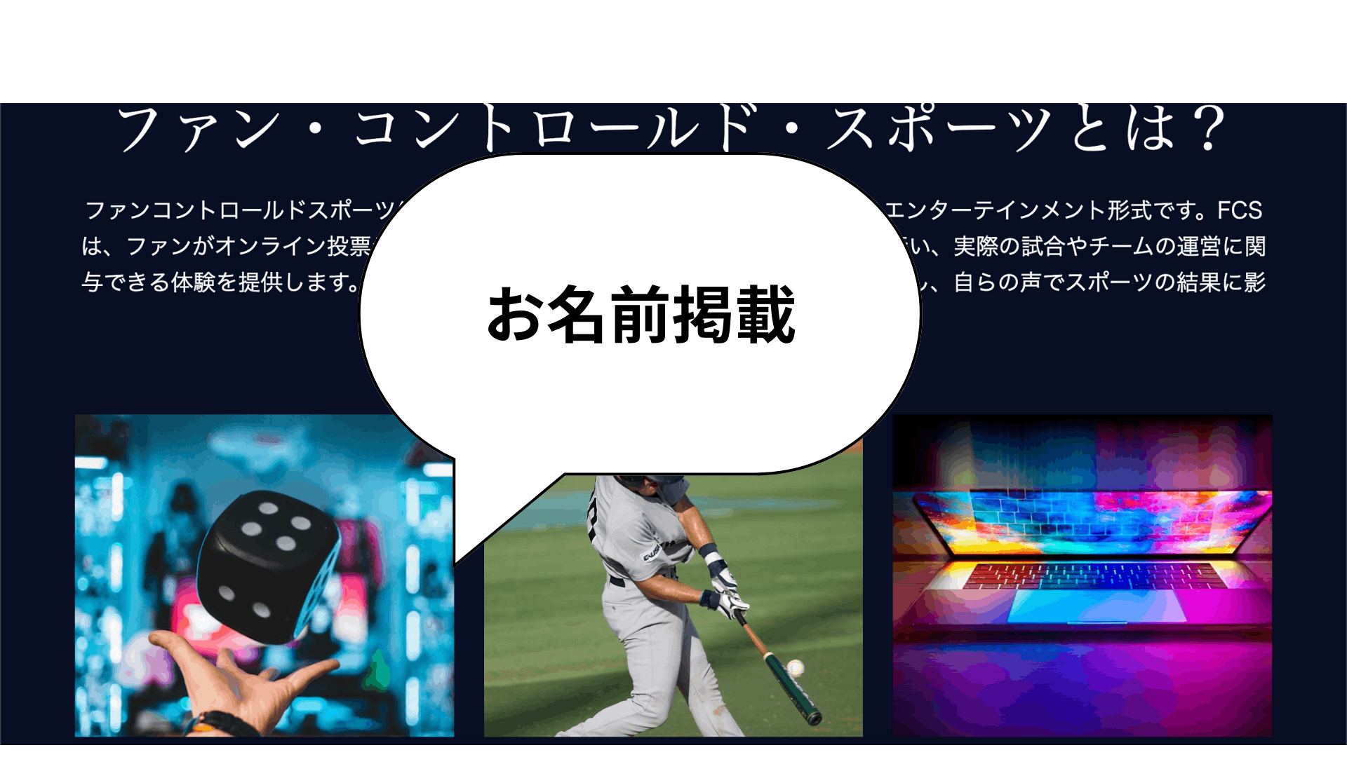 「ファン主導のスポーツ革新」 - ファン主導のスポーツ革新を目指し、ファンが試合に直接影響を与える体験を提供。