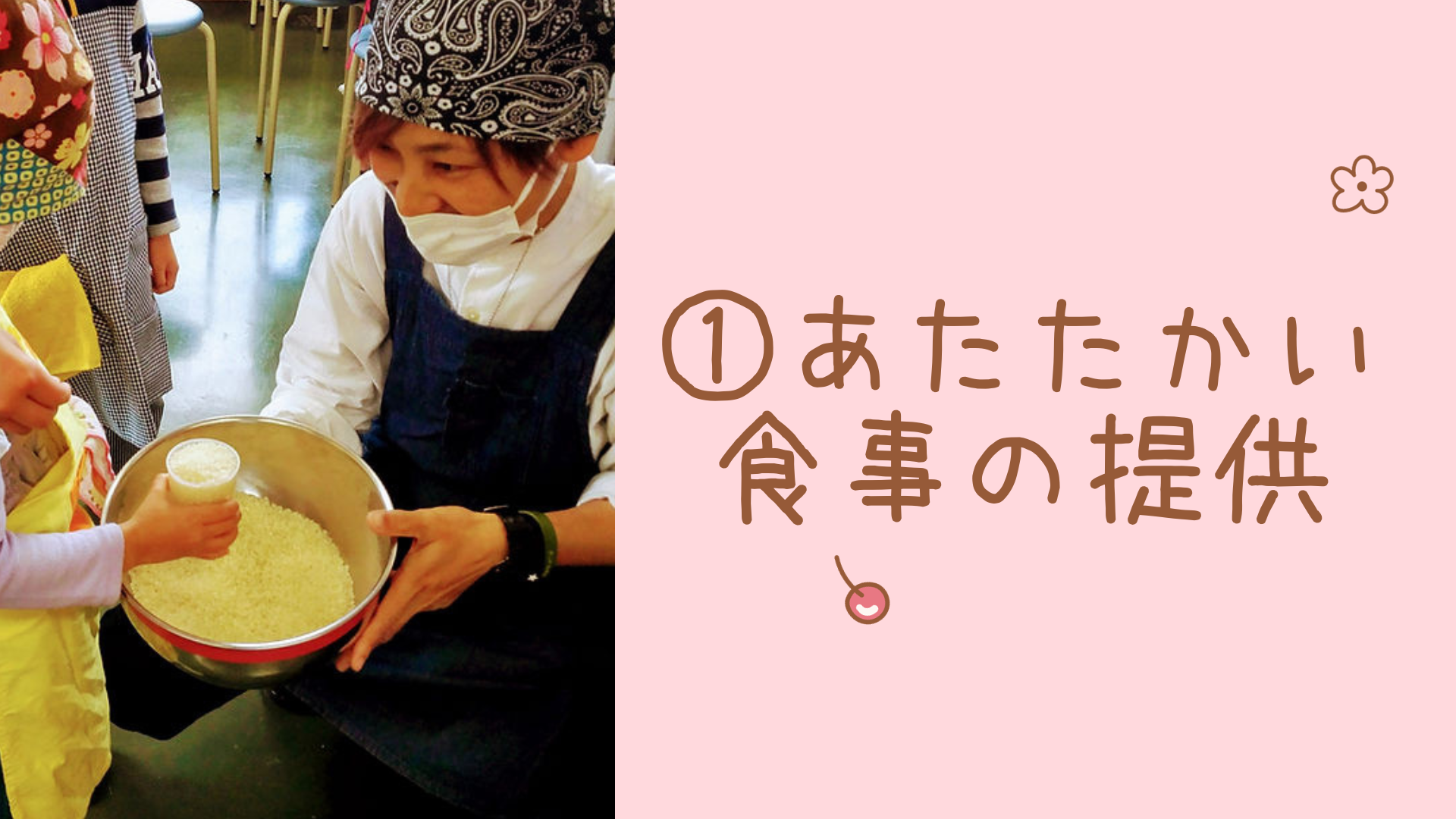 あたたかいご飯がお腹いっぱい食べられ、たくさんの大人に見守られながら、家庭でも学校でもない第3の居場所として子どもがのびのび子どもらしくいられる居場所として、