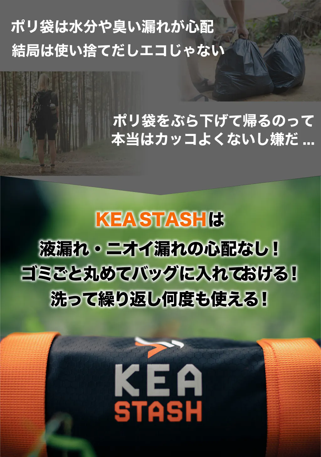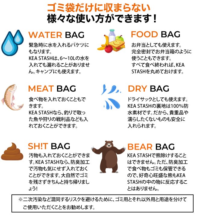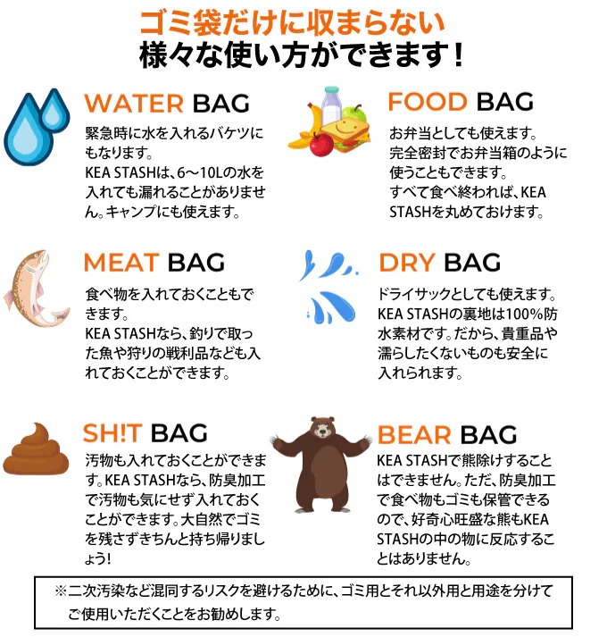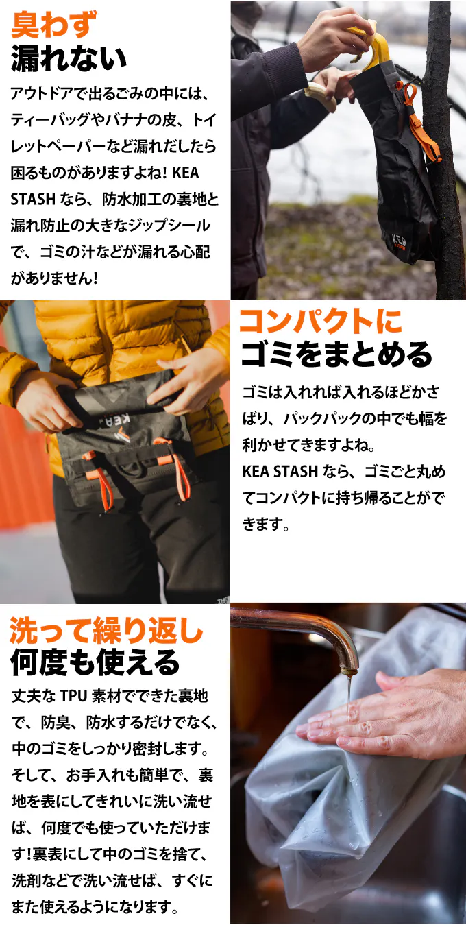 KEA STASHは、防水・防臭に優れ、さらに入れたゴミをコンパクトにまとめられるバッグです。