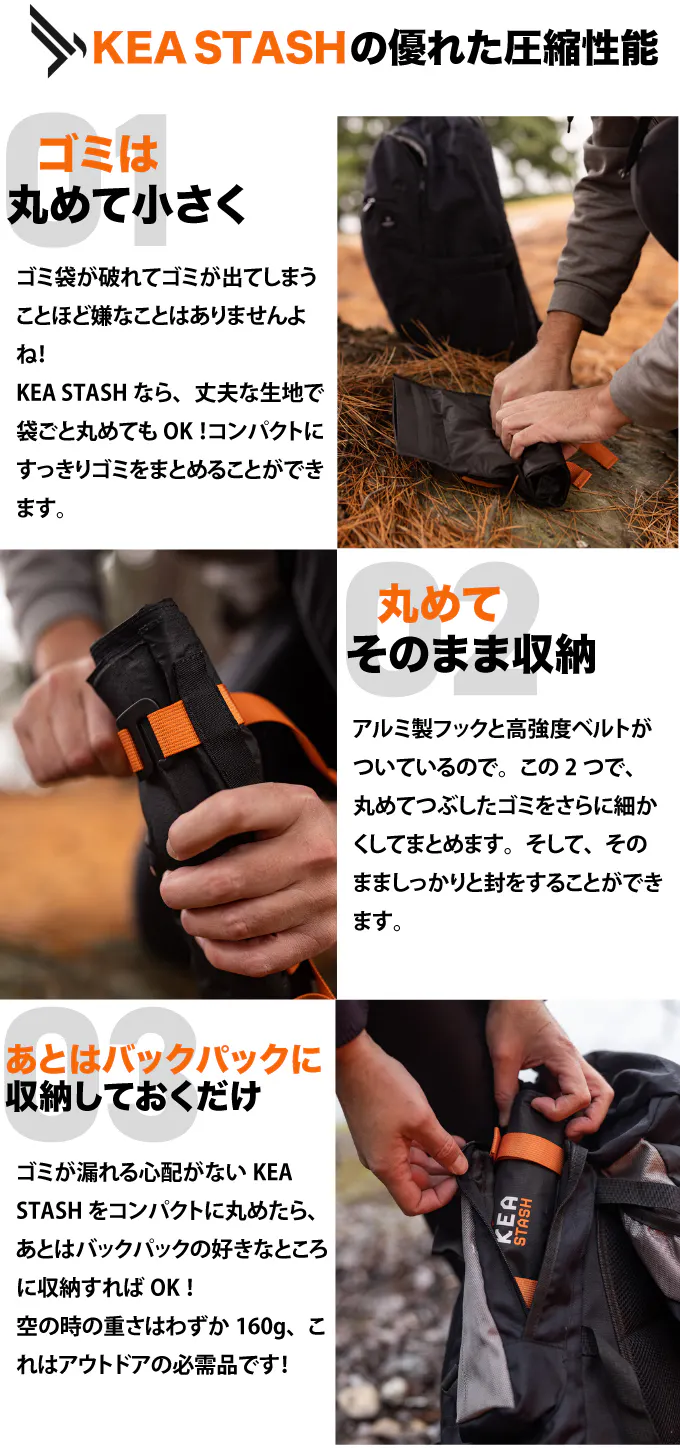 ゴミで荷物がかさばることなく登山やキャンプなどのアドベンチャーを楽しめます!
