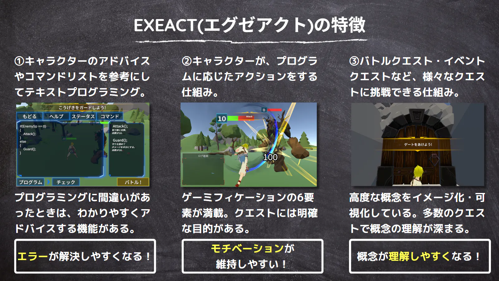 本プロジェクトでありゲーム名である「EXEACT(エグゼアクト)」で実現したいことは、