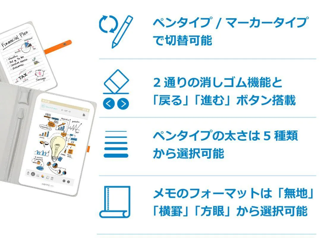 ・本体には最大約1,000ページ分保存可能(1ページあたりにどれくらい複雑にメモするかで保存容量は変わります)