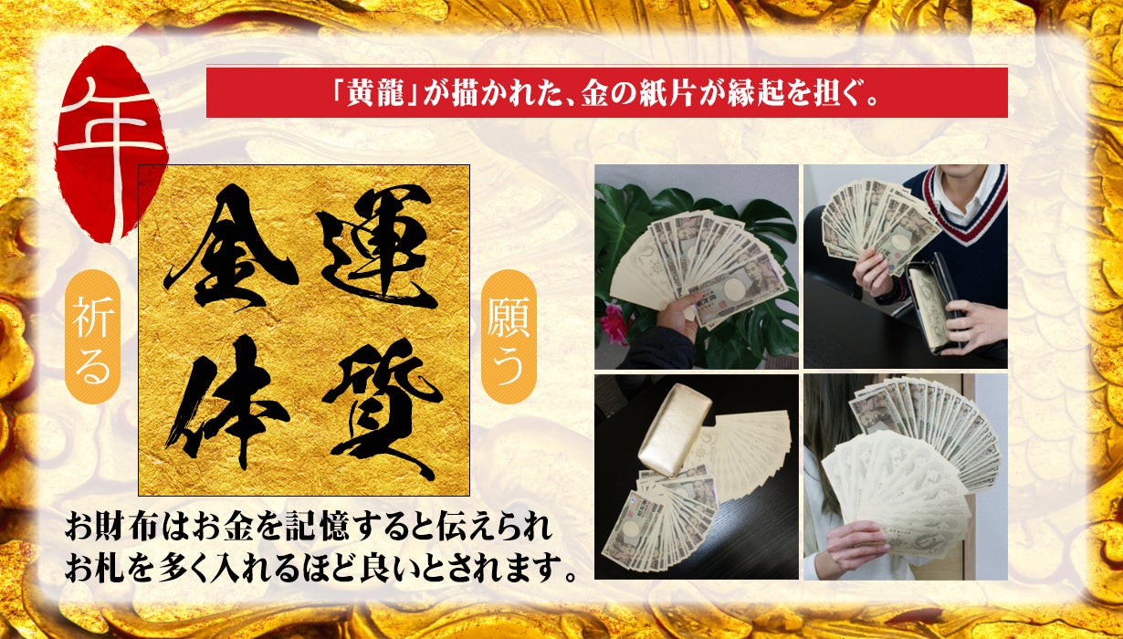 とくに新しいお財布には、金の龍が描かれたお札の元をお使いください。