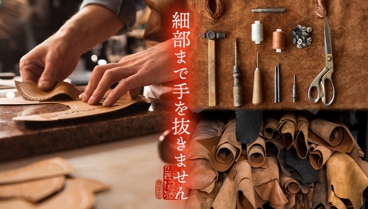 数万種類以上ある様々な「本革・生地・金具」から、何度も何度も打ち合わせを行い採用。