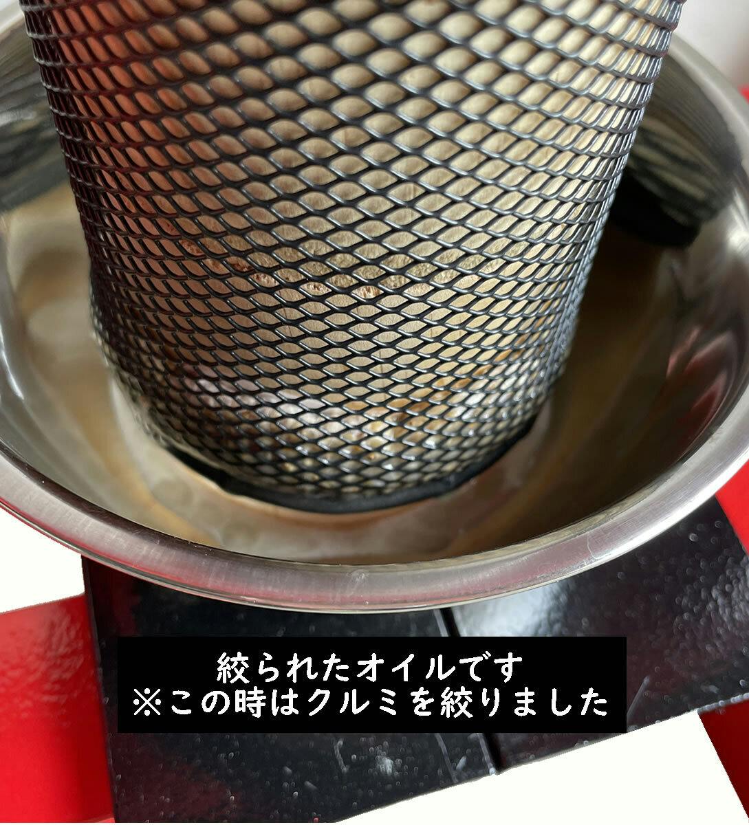 こうして絞られた植物油を舐めてみると市販品にはない美味しさに感動。
