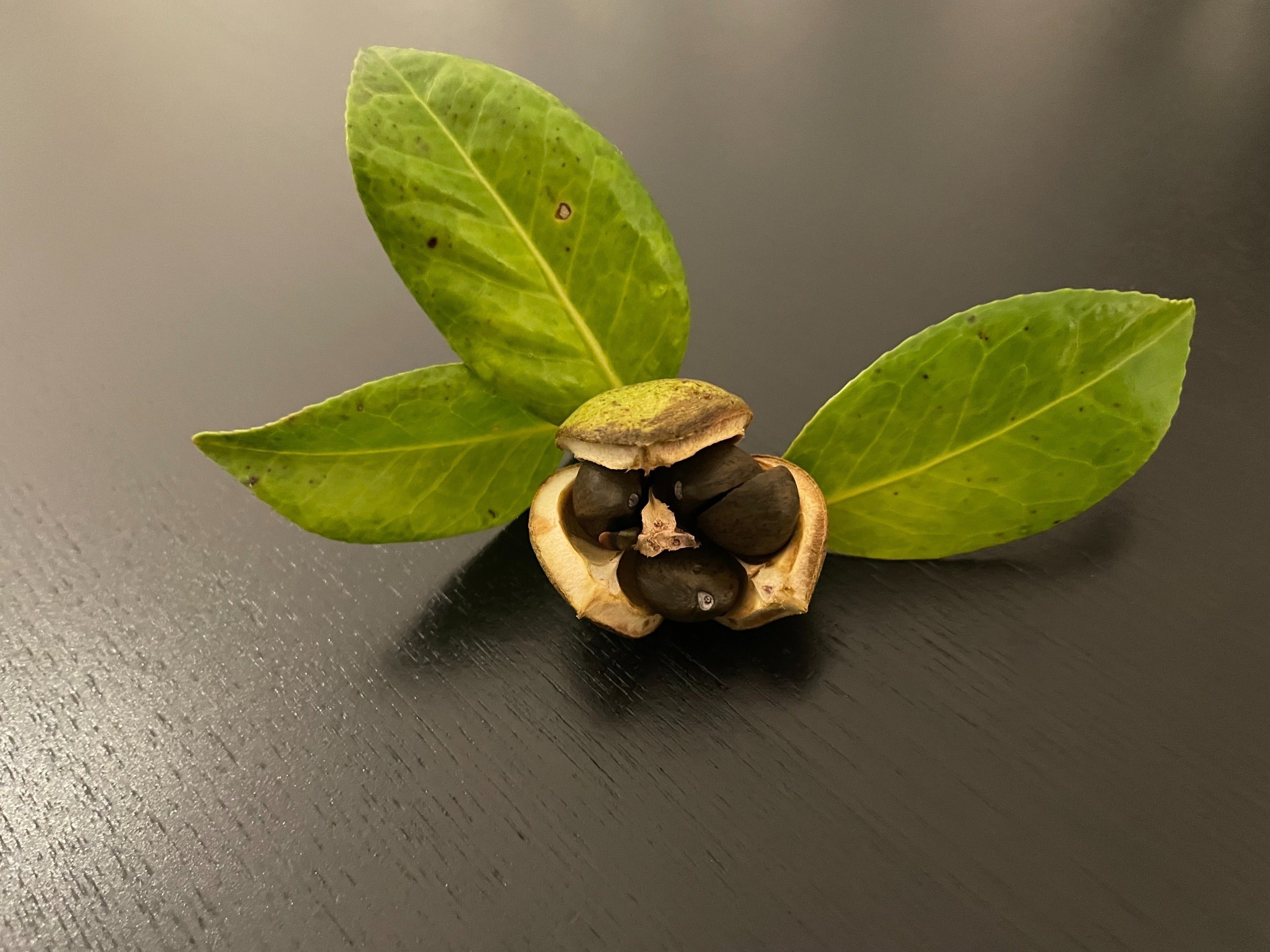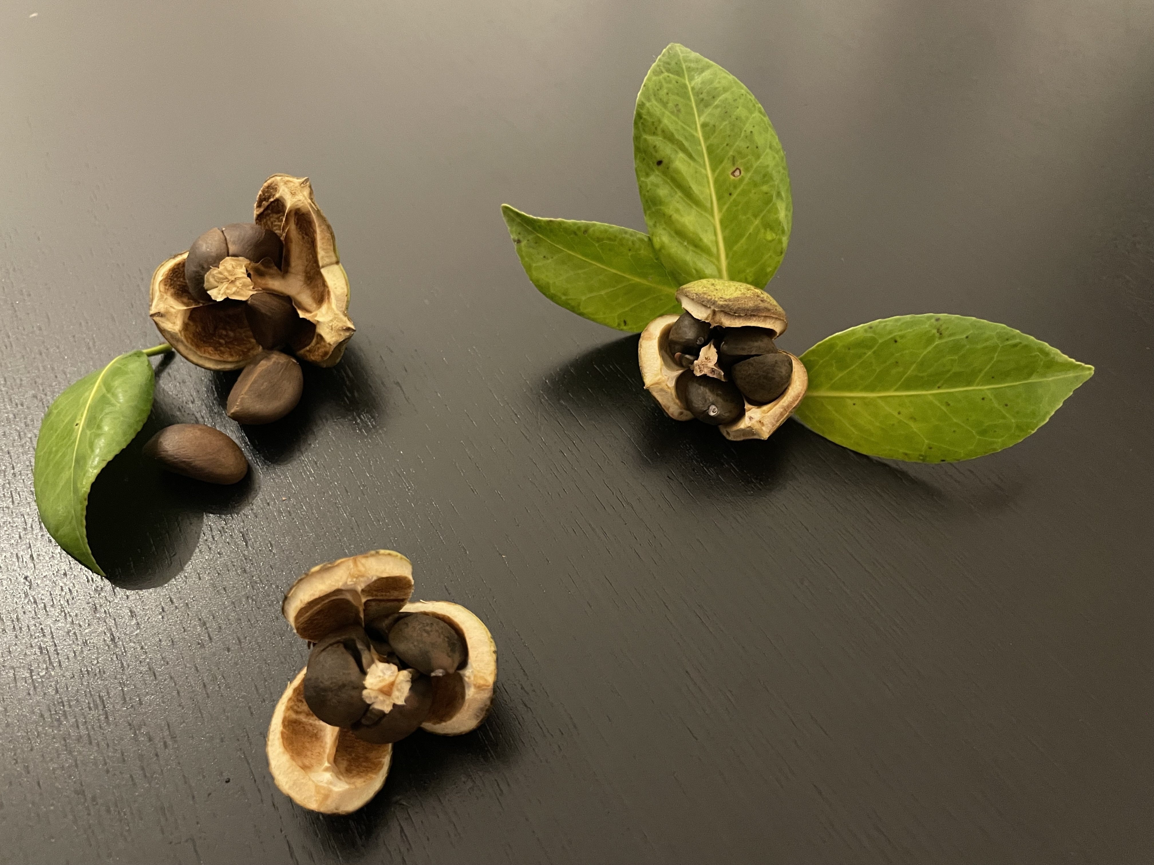 12月~1月頃に咲く椿、それが実をつけ、採取され一つの商品ができあがるまで1年位の時間を要することになります。