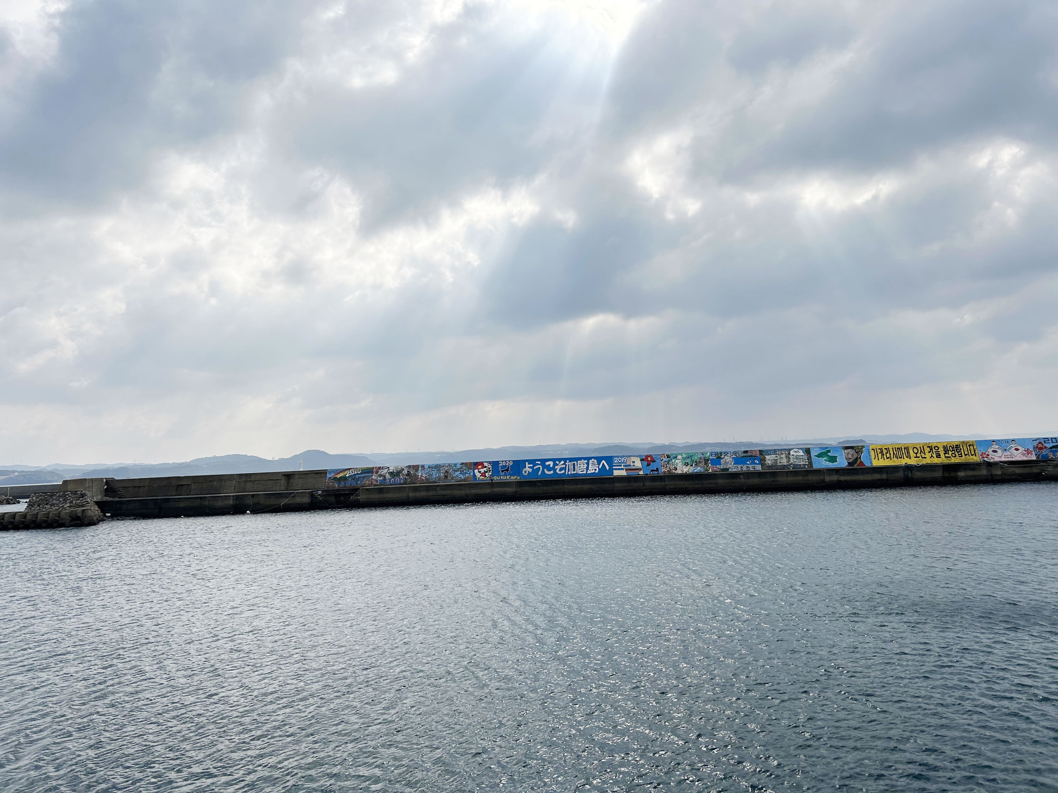 そのせいか馴染みある韓国への親しみを込めて加唐島の港では、日韓交流の証として韓国語であるハングルの文字で歓迎を謳っています。
