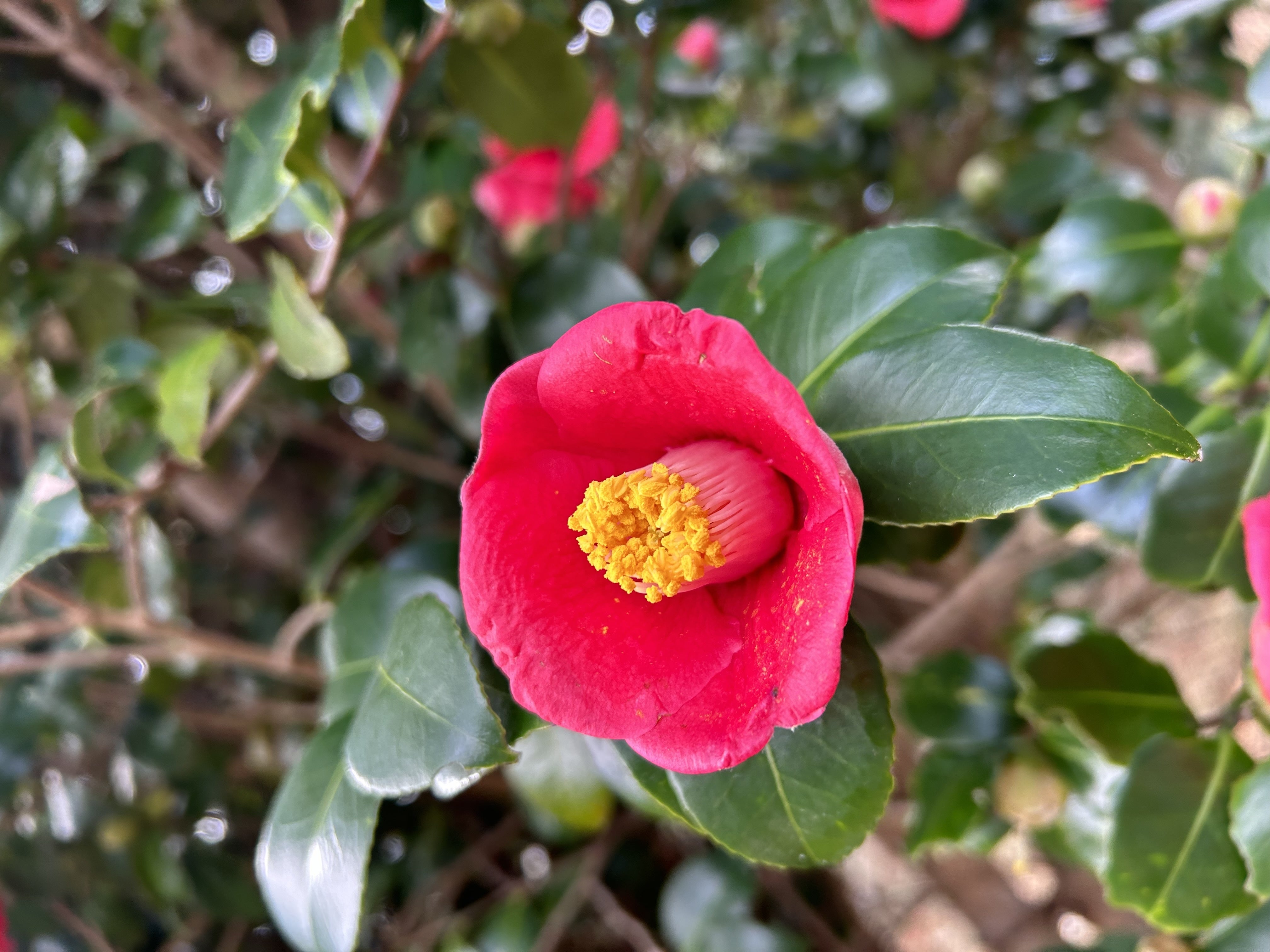 この時期に咲く代表的な赤い花である椿。