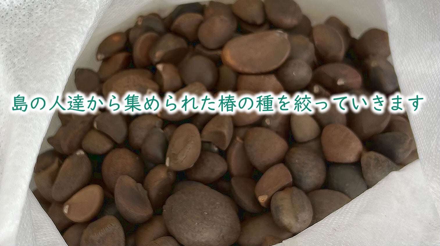 ツバキ油の製造は、加唐島にある椿の実を集めるところから始まります。