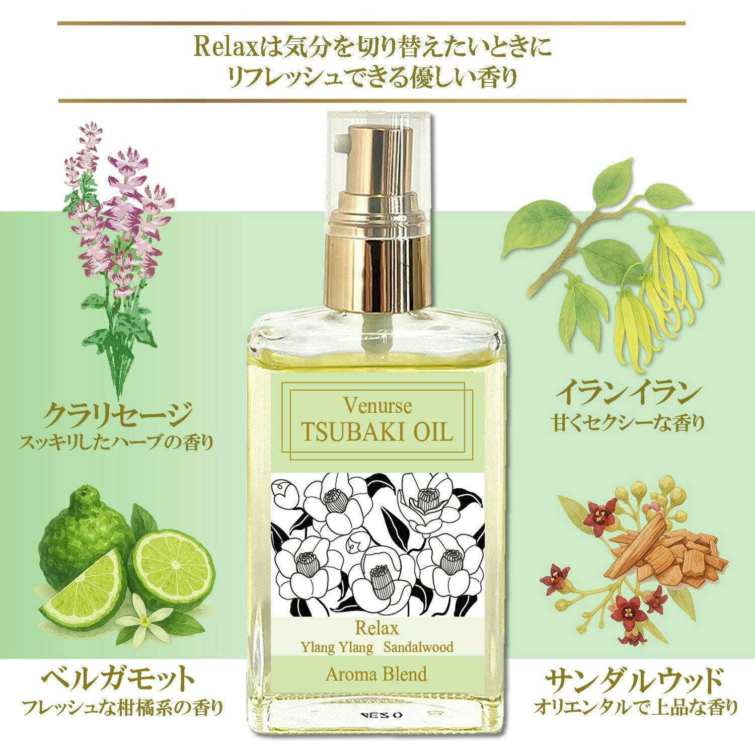 商品名「ヴィーナース ツバキオイル アロマブレンド Elegant/Relax/Sweet(全3種)」