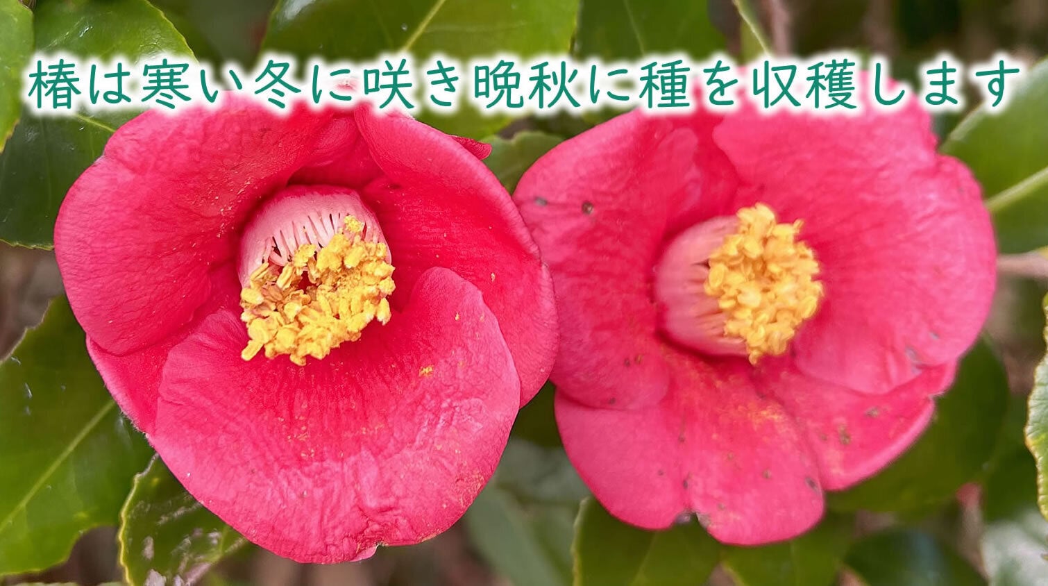 12月~1月頃に咲く椿、それが実をつけ、採取され一つの商品ができあがるまで1年位の時間を要することになります。