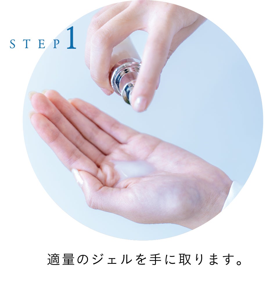 適量を手に取ってお肌につけていただくと、馴染みやすく、さらりとした保湿感があります。また、ジェルにはほんのりと「白いきくらげ」特有の優しい香りが付いてますが、肌につけた後はスッと香りが消えます。