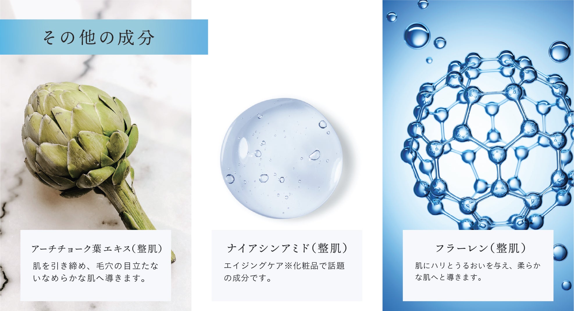 また、通常保湿力が高いとベタベタとした肌触りになりがちですが、この「白いきくらげ」から取れた生体水は、しっとりサラサラです。そのサラサラ感を活かして、ベタつかない付け心地の良さを実現させました。