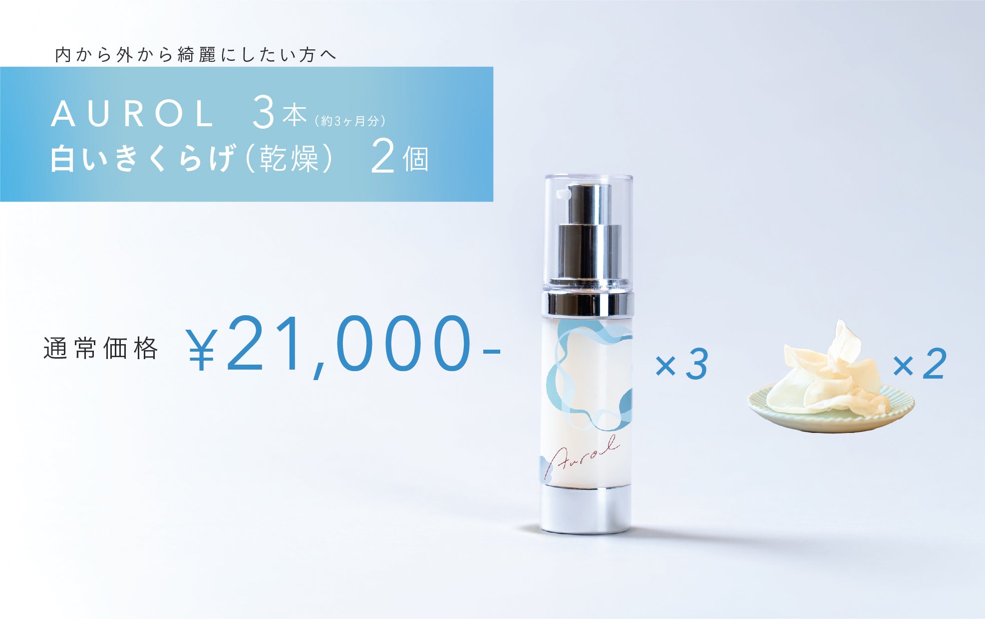 ⑫ Aurol 3本+白いきくらげ(乾燥) 2パック 内と外から綺麗にしたい方へ