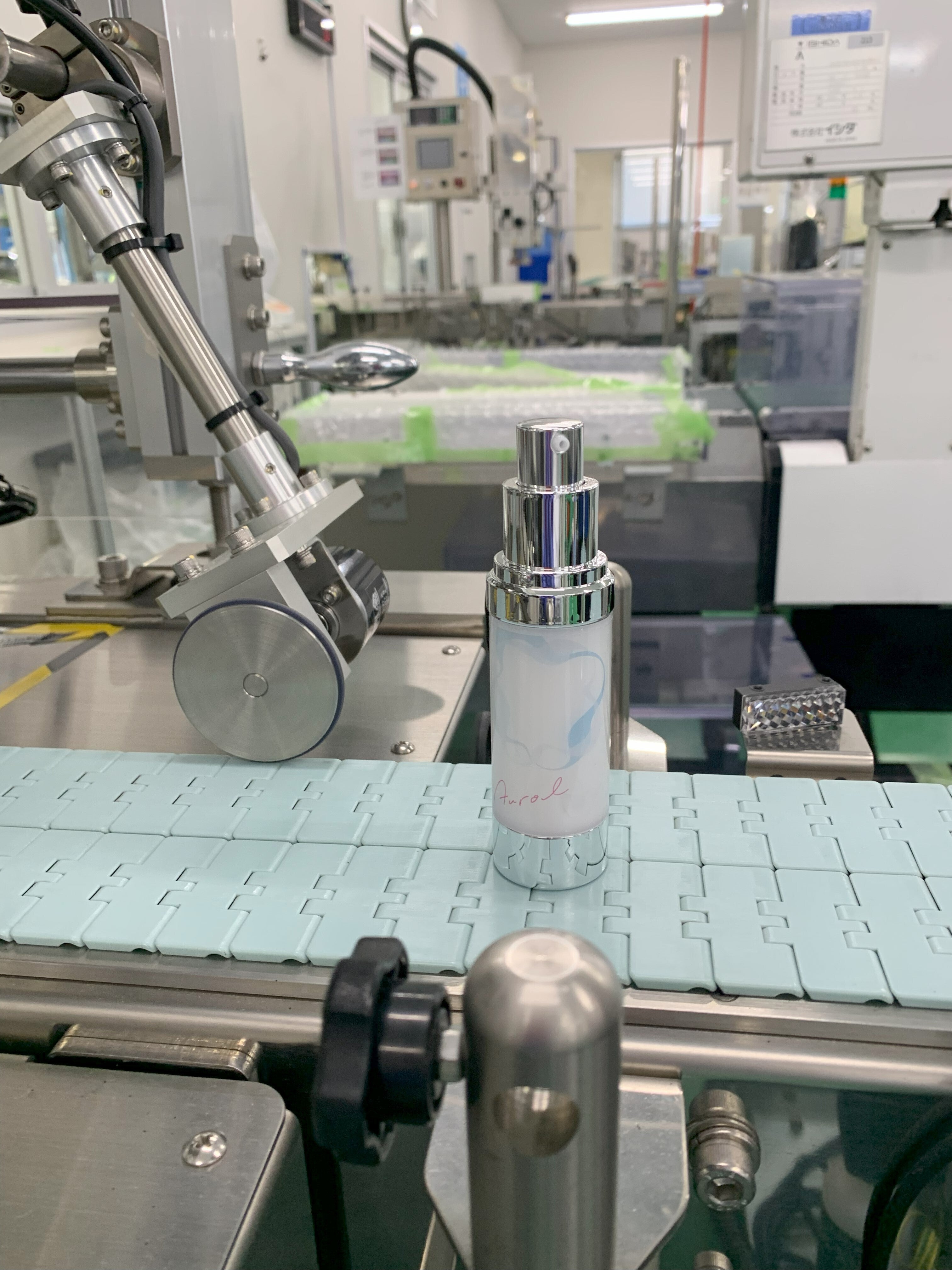2024/04/22 11:14AUROLモイスチャライジングジェルの製造に立ち会ってきました。製造ラインに入って見学させていただきました。製造ラインがクリーンルームなので、白衣に着替えて、髪も帽子に詰めて、手洗いしてアルコール消毒をしてから手袋をして、コロコロで全身のほこりを取り、エアシャワーを浴びて製造ラインの有るエリアに入りました。結構大変(;゚ロ゚)全体の製造ラインの説明を受けながら、AUROLの製造ラインを見学しました。何千個も製造するラインと違い、AUROLは小ロット生産なので、こぢんまりと可愛く製造ラインに流れていきました。ラインの最終はパッケージされたAUROLが出荷用の段ボール箱に入って終了です。この後、最終の菌検査を経て、ハイネファームに届きます。もうすぐ皆様にお届けできます!! もっと見る