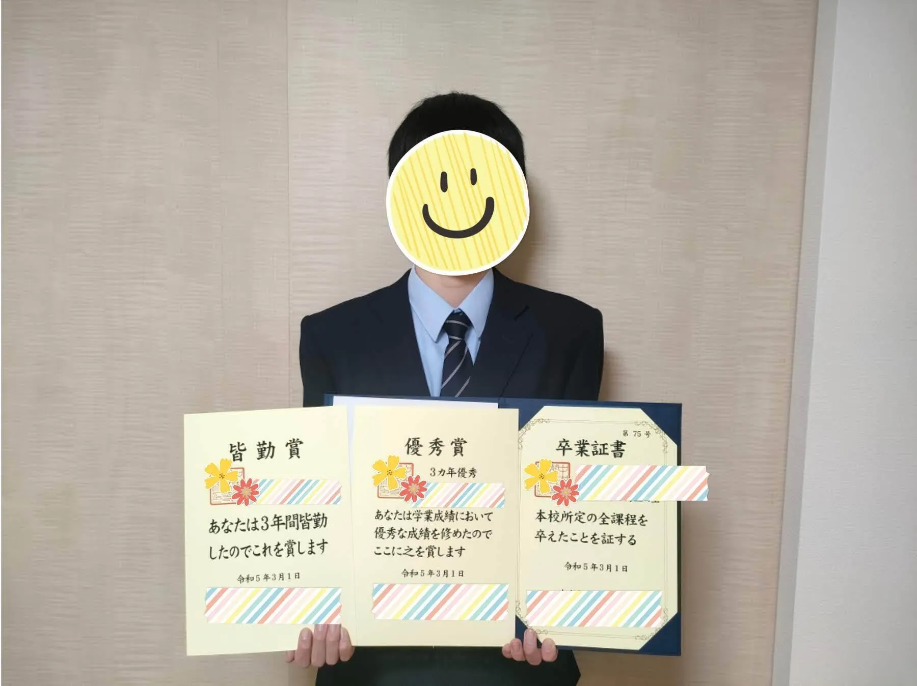 皆勤賞で学校に通えるようになり、推薦で名門大学付属高校に合格」
