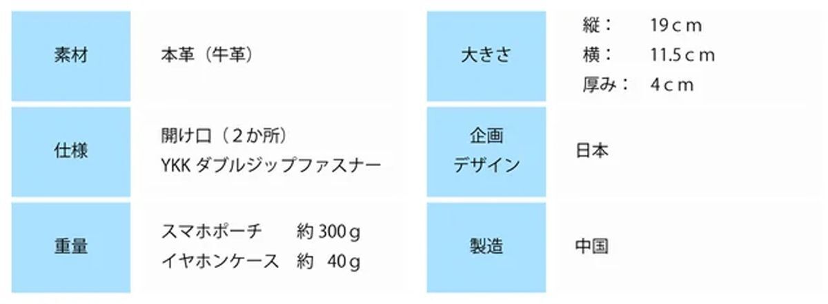 Q:重さはどのくらいですか?A:スマホポーチ約300g イヤホンケース40gです。