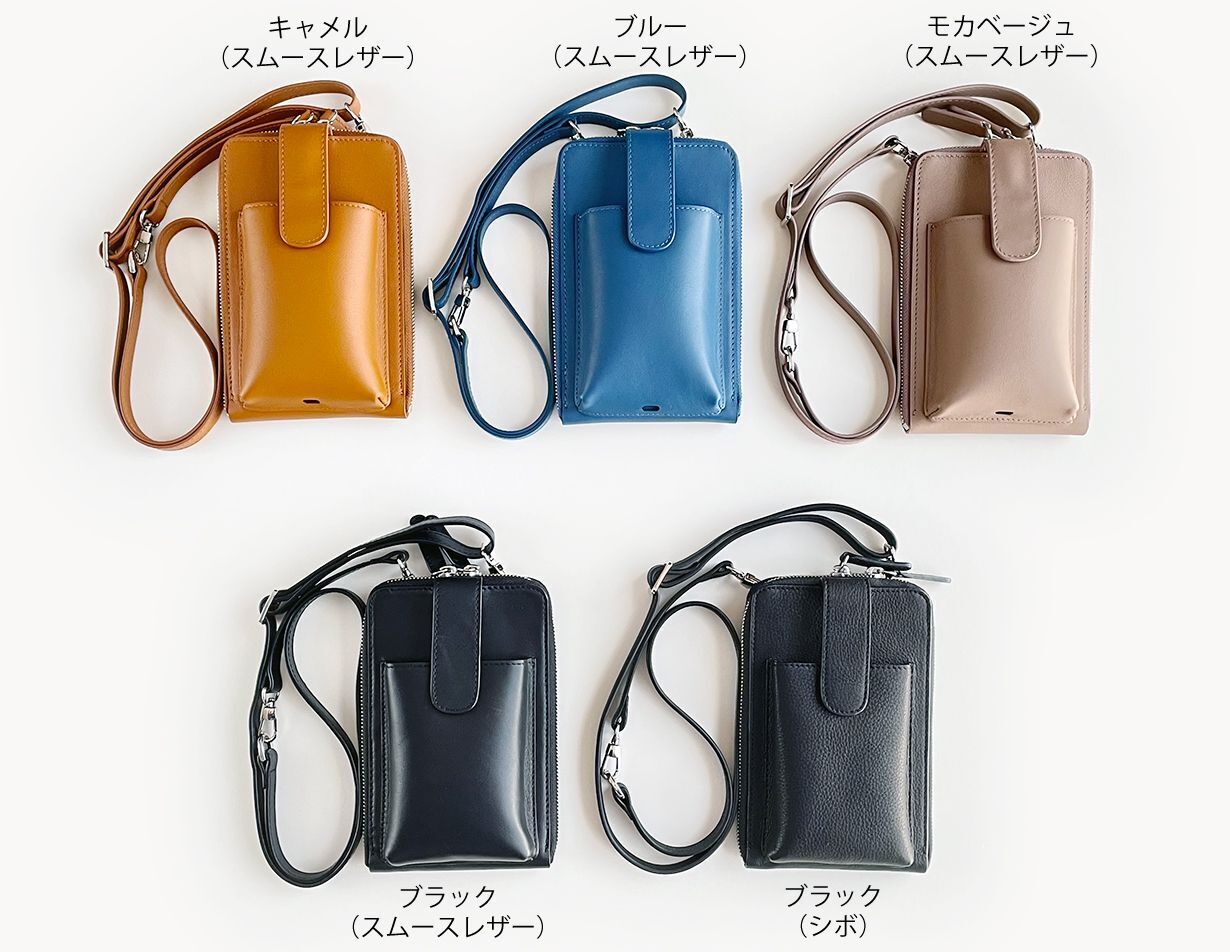 ※キャメル、ブルー、モカベージュは少し光沢のあるスムースレザーです!