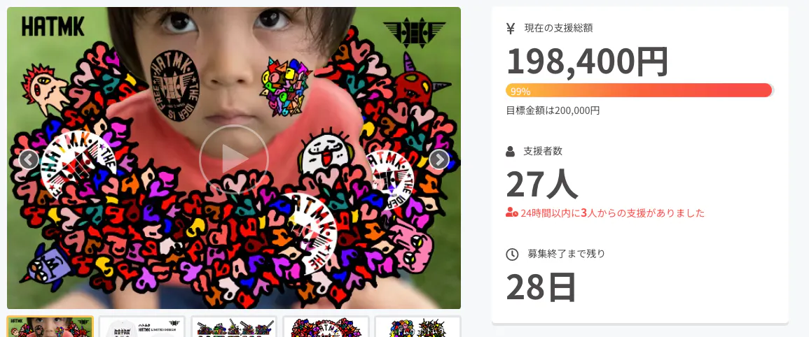 ありがたい事に、公開1週間で目標金額の99%達成まで来る事ができました!