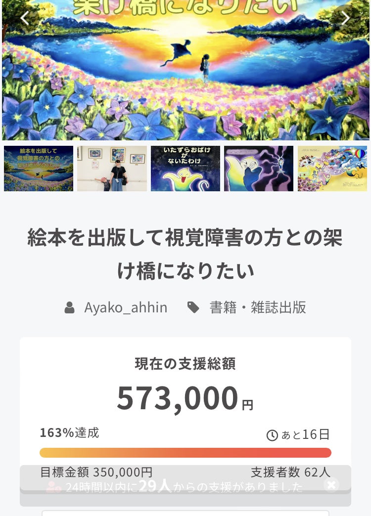 皆様のおかげで早くも1日で目標金額に到達し、それをさらに超えていることにとても驚いております。
