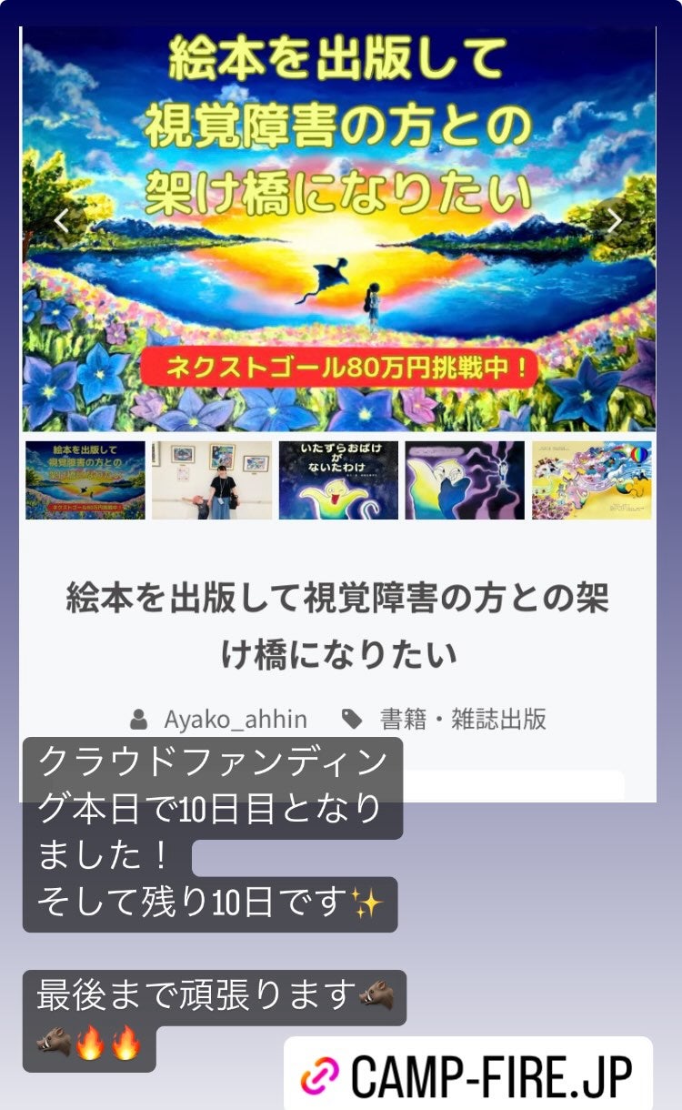 クラウドファンディングが始まってから早いもので10日目とりました!