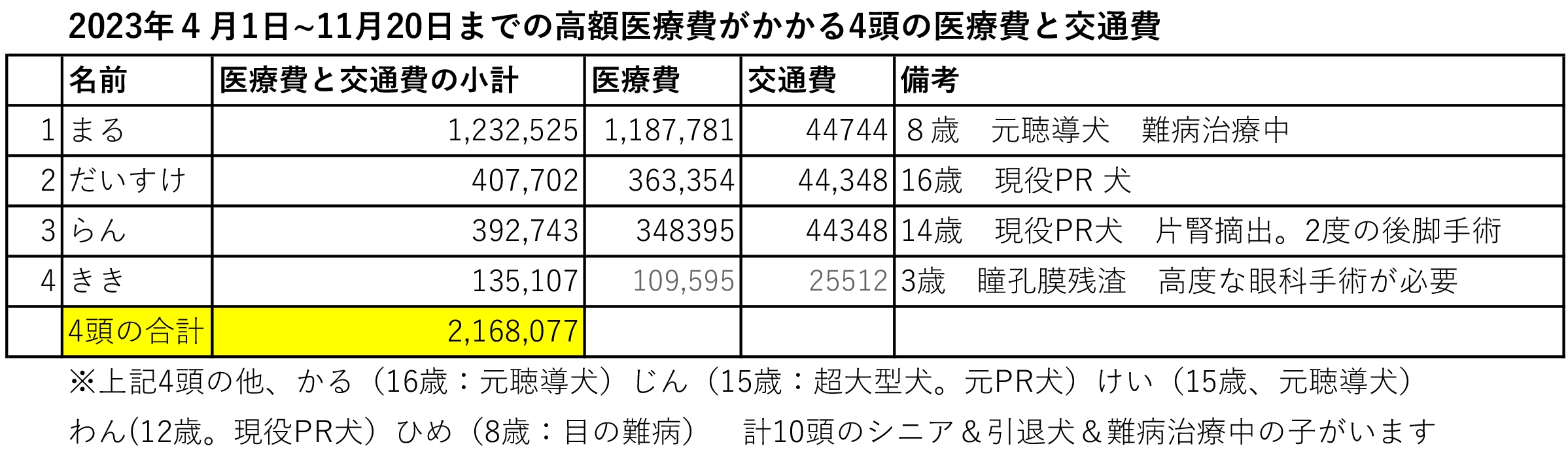 ■主な資金の使い途:高齢犬・引退犬・難病の子の医療費に遣われます