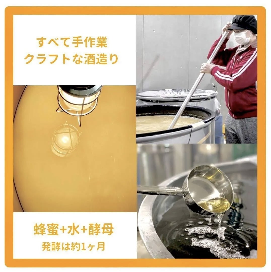 海外ではハーブや果実をつかうことも多いミードですが、われわれは蜂蜜のみを使用し、さらさらとした飲み口と爽やかな甘みが特徴のアルコール10%の甘口のお酒に仕上げております。