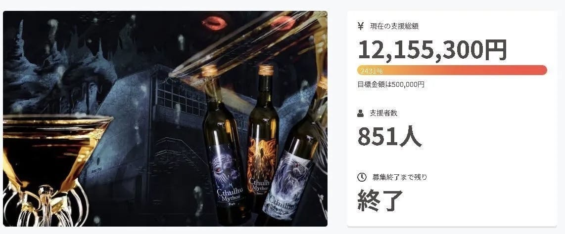 2023/12/14 10:06このたびはご支援いただき、誠にありがとうございます!すべてのご支援者様へ12/5にクリスマスミードの発送を終え、12/7〜12/12の間に東武百貨店池袋店様の催事にて試飲販売を行いました。https://meadery.jp/mead-event/3231/無濾過のクリスマスミードも大変ご好評で、支援者の方もご来場いただき、誠にありがとうございます!!また、明日から12/15(金)〜12/16(土)12:00-20:00のお時間で、信濃屋 豊洲フォレシア店にて試飲販売を行います。ぜひ皆様のご来場をお待ちいたしております。https://meadery.jp/mead-shop/3057/最後に、このたびご支援者様には通販「エレナ酒店」のクーポンを同梱しております。クリスマスミードも限定100セットでご購入いただけますため、追加購入や他のミードもぜひお試し頂けますと嬉しいです。▼クリスマスミード二種https://item.rakuten.co.jp/elena-sake/christmas-mead/▼エレナ酒店https://www.rakuten.co.jp/elena-sake/引き続き、ご愛顧のほど宜しくお願い申し上げます。 もっと見る
