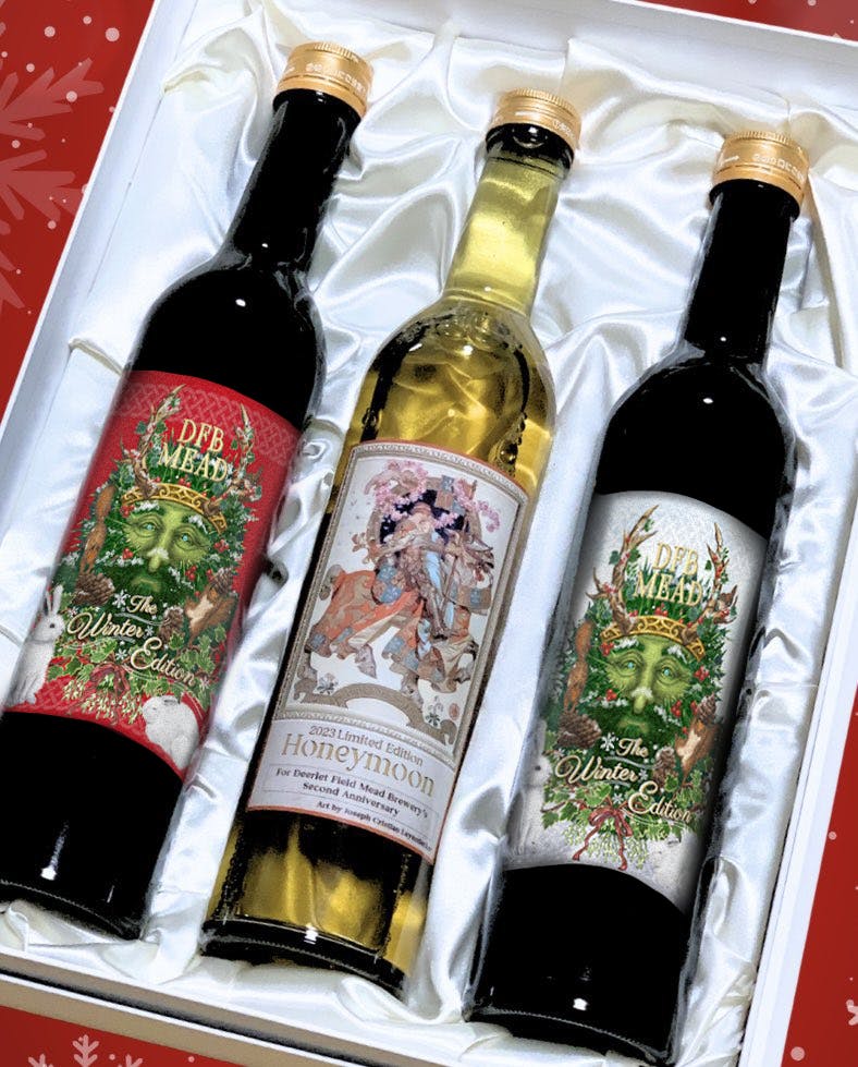 また、醸造所2周年記念ミードを加えたプレゼントにも使える3種セットのギフトボックスもご用意しました。