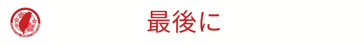 世界遺産条約は政府間条約であり、登録の申請は政府が行うものなのですが、台湾政府の課題は山積み。だからこそ求められているのは、台湾の地域が声をあげることです。そして隣人たる私たち日本人から応援することも大切なことだとと考えます。
