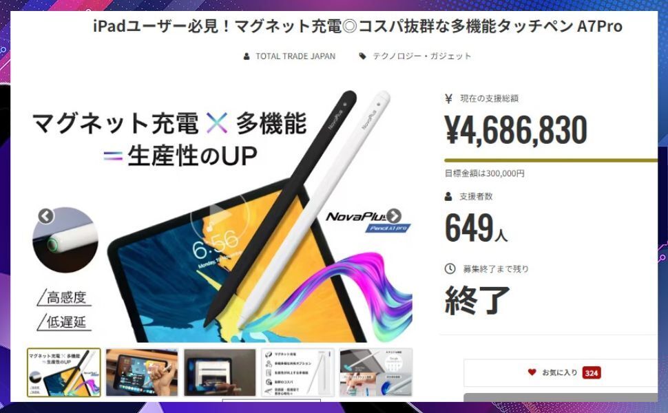 このような、高品質・機能・使いやすさがiPadユーザーに支持され、前回のプロジェクトでは「649名」ものたくさんの方に、ご支援いただきました。