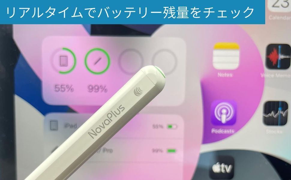 Apple製ペン先交換 可能/パームリジェクション機能◎/筆圧検知機能 なし/バッテリー残量ディスプレイ LED+ウィジェット