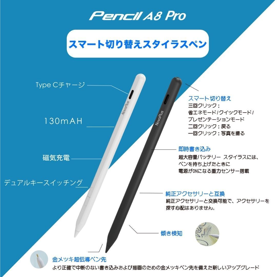 『A8 Pro』は、Apple Pencil1/2に互換性のあるオプションを共有可能。必要な時に手に入る安心感があります。
