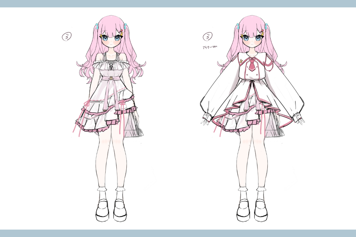 新しい姿の衣装デザインを前もって打ち合わせして、描いていただきました!
