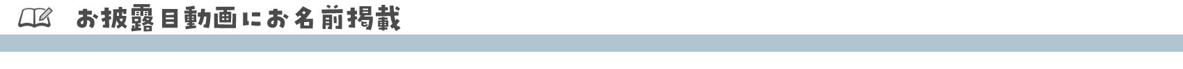 ご支援への感謝の気持ちを込めて、お披露目動画に任意のお名前を掲載致します。