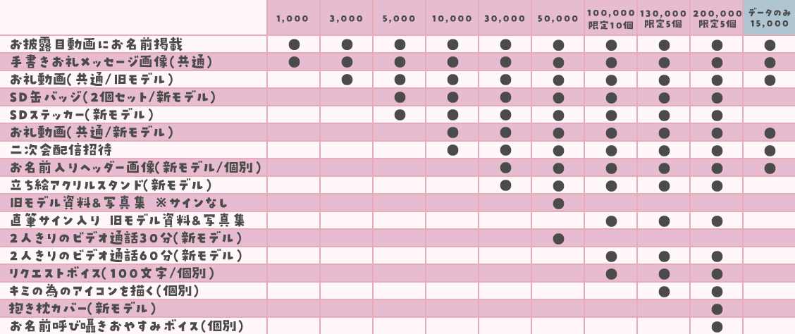 通話時間:30分→写真集プラン,60分→直筆サイン入り写真集プラン/イチカチャン画伯プラン/おやすみプラン