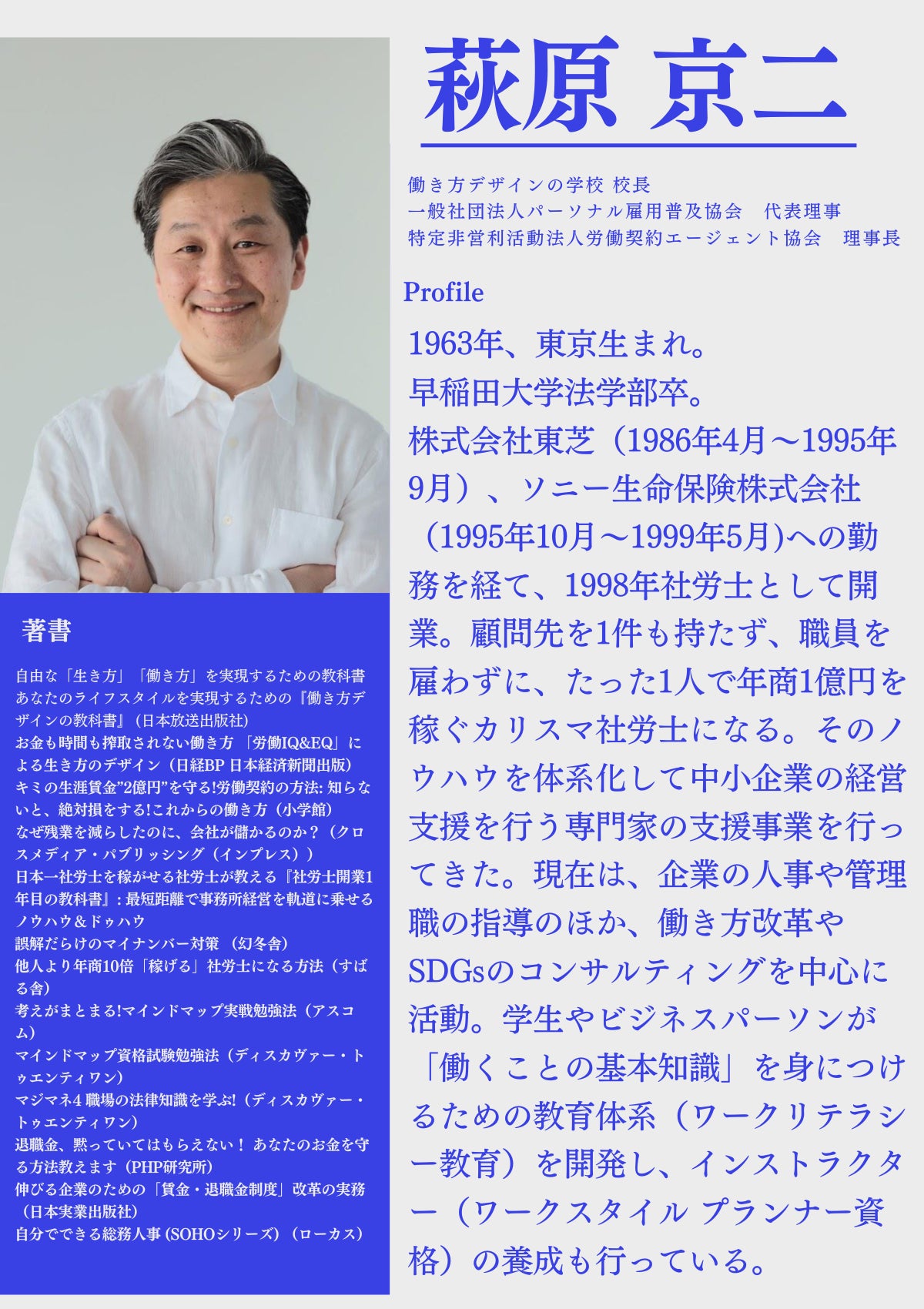 はじめまして。働き方デザインの学校 校長 萩原京二(はぎわら・きょうじ)と申します。