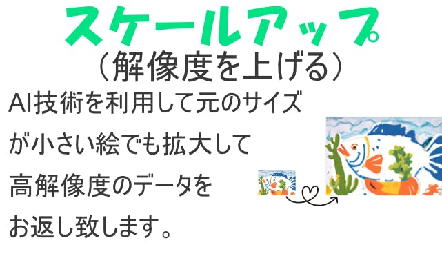 3年前に部屋を整理した際、子供が幼稚園の頃に描いた絵が見つかりました。紙の端が破れていました。ほかにも大切に保管しているものもありますが年月が経つと紙が変色しています。このままでは劣化してしまうかもしれないと考えスマホで撮影し汚れた部分を映像ソフトで修復してパソコンに保存しました。保存された絵はパソコンの背景としても使用しています。 ある日、同僚が孫の絵と習字をデジタル化したいと言い出しました。彼の孫は東京で暮らしているため年に数回しか会うことができません。彼はデジタル化した孫の絵と習字を大きなサイズのタペストリーにしました。それを見て、自分も子供の絵をタペストリーとして作成し、壁に飾りました。
