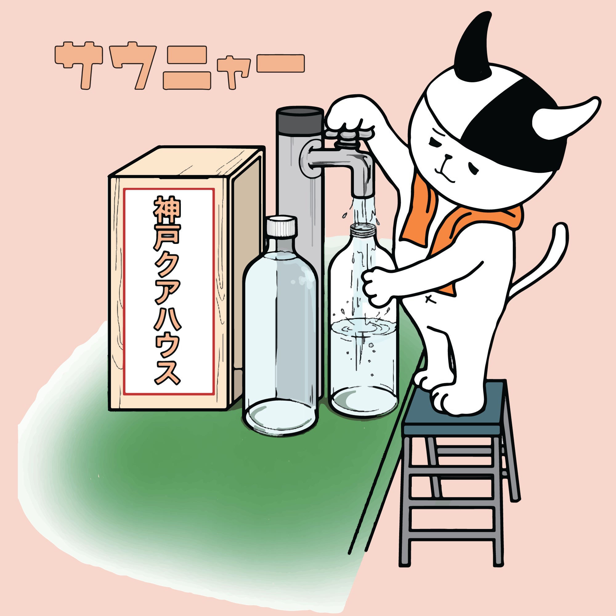 サウニャーは神戸クアハウス自慢のサウナと水風呂を心ゆくまで堪能し、水汲み場で神戸ウォーターを持ち帰ってくれたのでした。