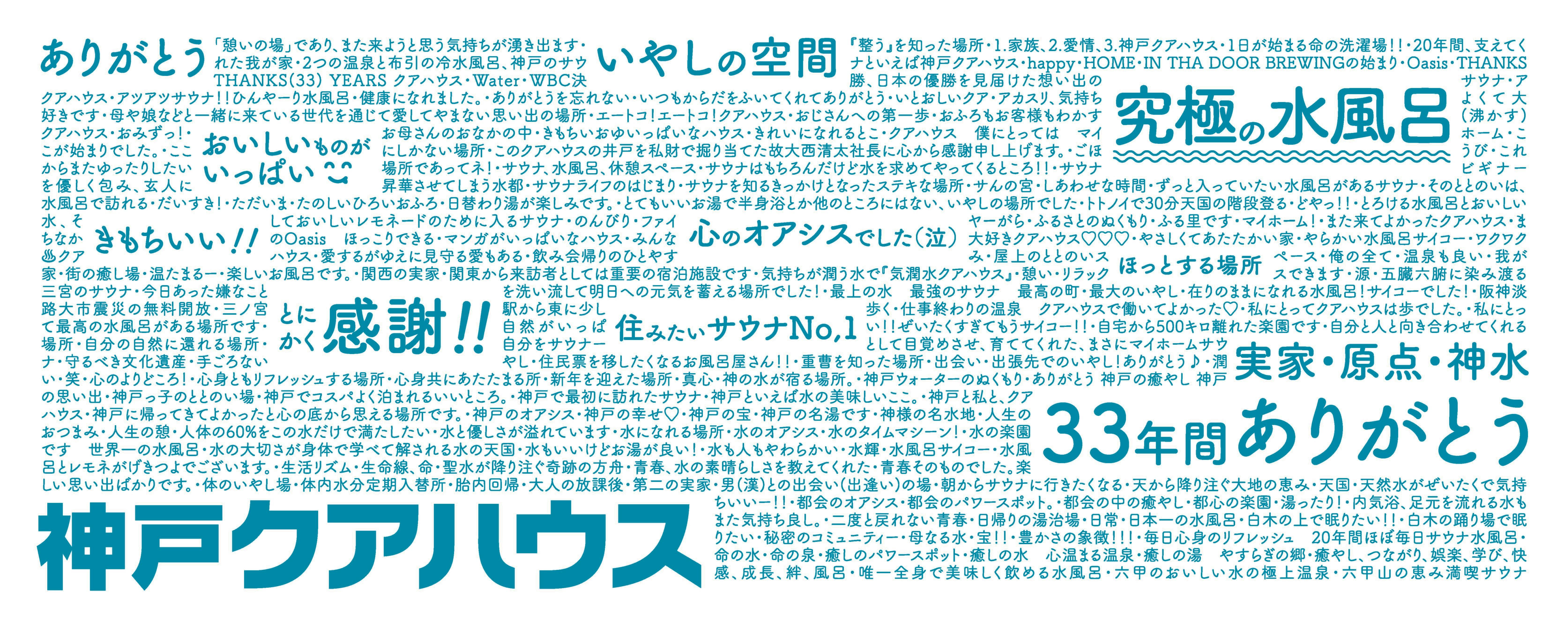 皆様からの温かく熱いメッセージ「#あなたにとって神戸クアハウスとは?」を館内および公式Xで期間限定にて募集しましたところ、総勢なんと約250名の方から応募をいただきました。