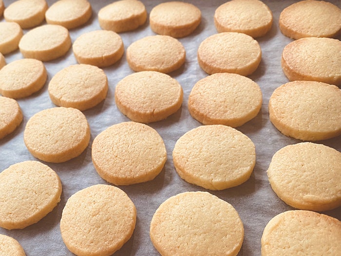 この無添加米粉クッキーは小麦粉、乳、乳製品、卵は一切使用しません。また砂糖も使わずにメープルシロップで甘味を出します。地元の米粉、自然塩などを使用します。