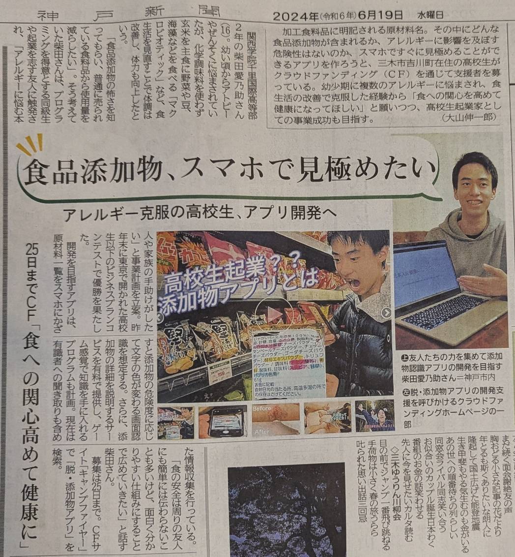 すっごく元気で明るい高校野生児です。大阪のインターナショナルスクールに通っていて英語も好きで得意としています。昔は病弱でアトピー、喘息などのアレルギーをもっていました。それが改善した理由、それは『脱!添加物』!!!だから添加物を3秒で見分け、さらに詳細や危険度などを色で判別できるようなアプリを作ります!!