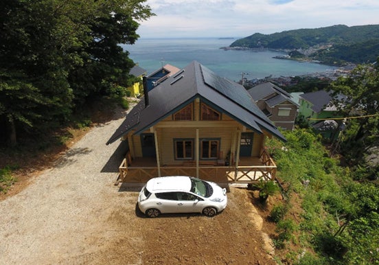 電気を自給自足できるログハウスを建てて体験型のショールームにする。