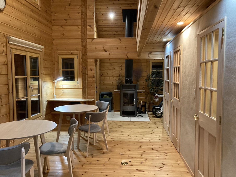 *事務所兼ショールームだったログハウスは改装してコワーキング&カフェスペースを設けました。