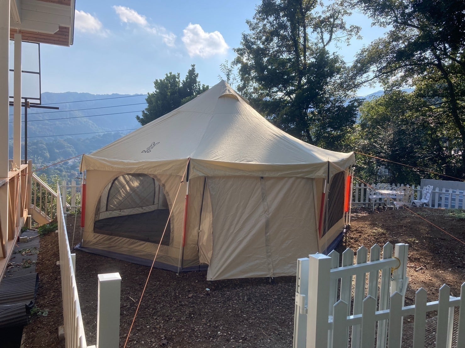 *併設するキャンプ場の3つのテントサイトはプライベートな空間として楽しめるように設計を工夫しました。
